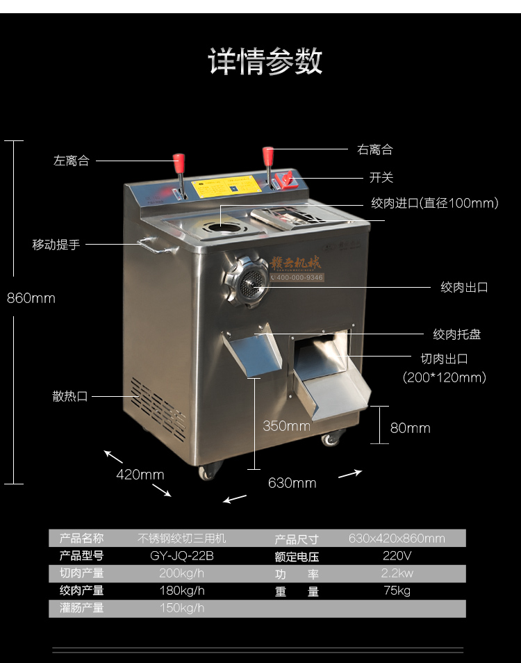 贛云GY-JQJ-22B不銹鋼絞切三用機