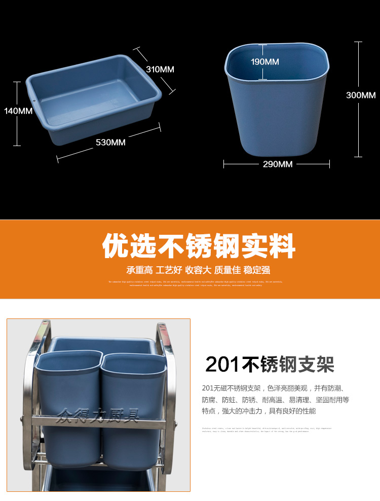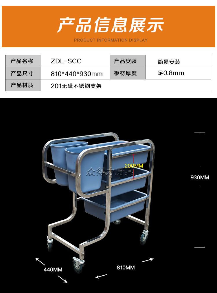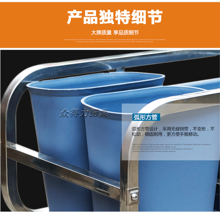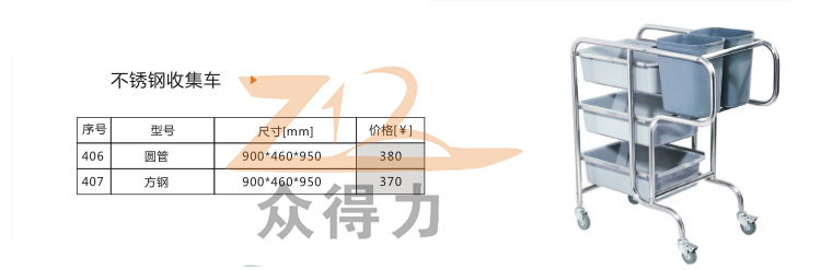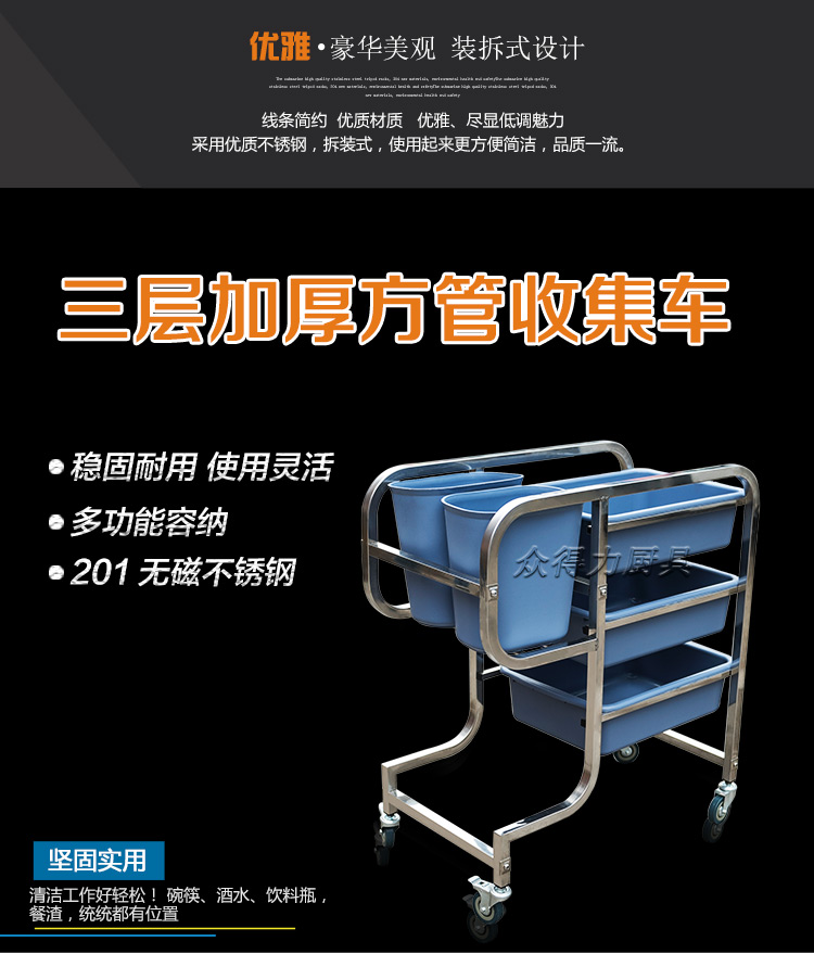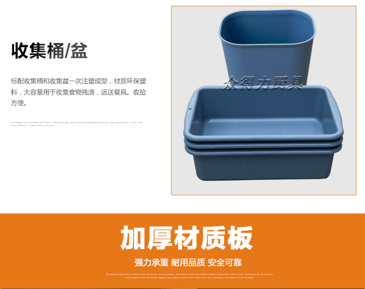 江西眾得力廚具有限公司生產(chǎn)銷售商用廚具,白鋼調(diào)理系列設(shè)備及食品機(jī)械,提供中央廚房工程項(xiàng)目整體解決方案。不銹鋼收集車有方管和圓管之分,組裝式,拆卸清洗方便,采用標(biāo)配足0.8mm201無磁不銹鋼加工設(shè)計(jì)。外形美觀,設(shè)計(jì)精量,符合餐飲食品衛(wèi)生需求。