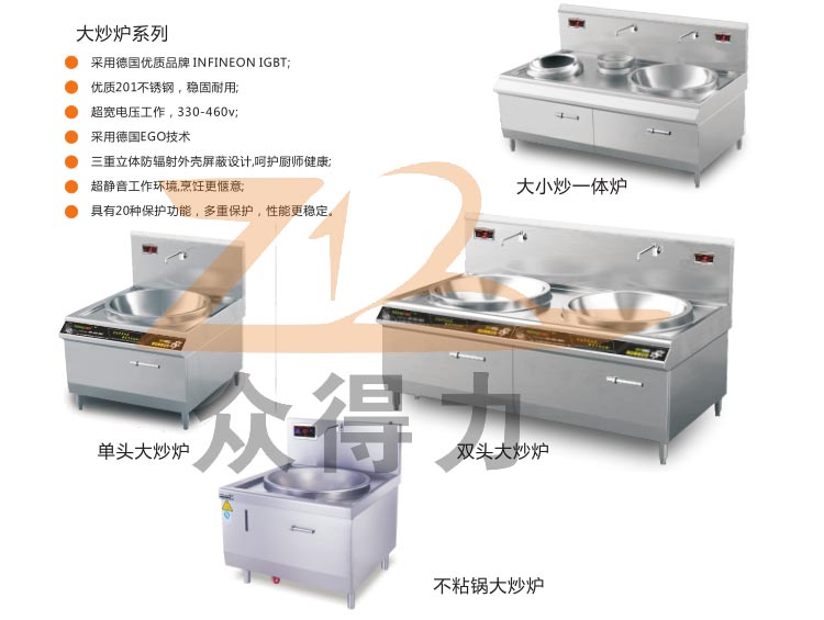 眾得力廚具一站式采購平臺為您提供華能泉電磁爐系列大炒爐,有單頭大炒爐,雙頭大炒爐,大小炒一體爐,還有不粘鍋大炒爐等產品選購。