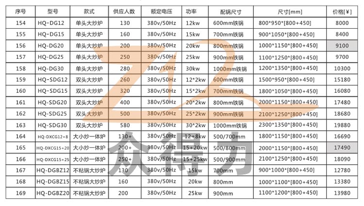 電磁爐系列大炒爐詳細技術參數及統一報價
