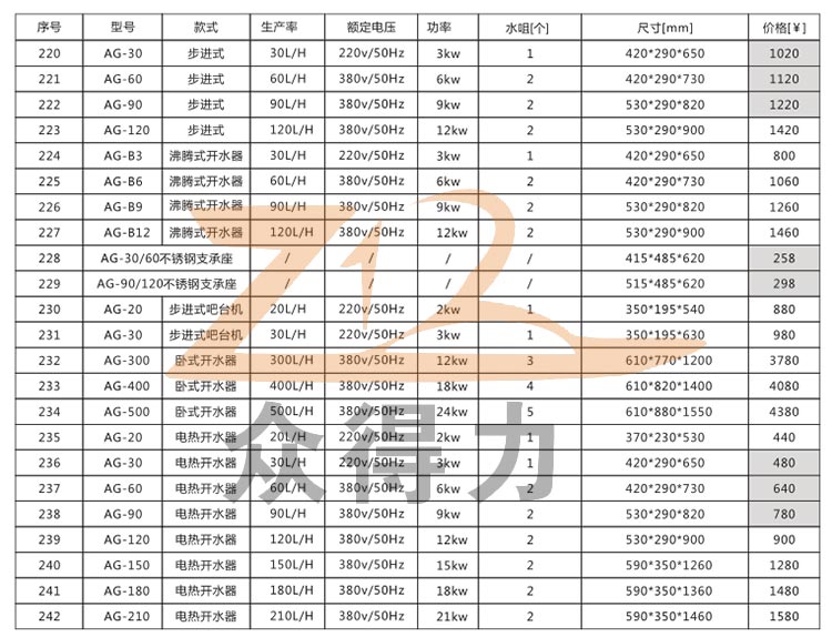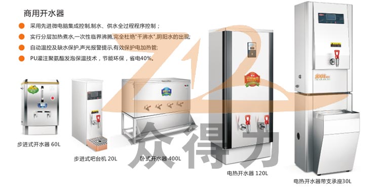 眾得力廚具一站式采購平臺為您提供嘉盛系列各式步進式開水器,商用開水器,柜式開水器,電熱開水器,適合廚房酒店、餐飲、高檔休閑場所、學校、醫(yī)院等企事業(yè)單位,企業(yè)使用,產(chǎn)品符合食品衛(wèi)生需求