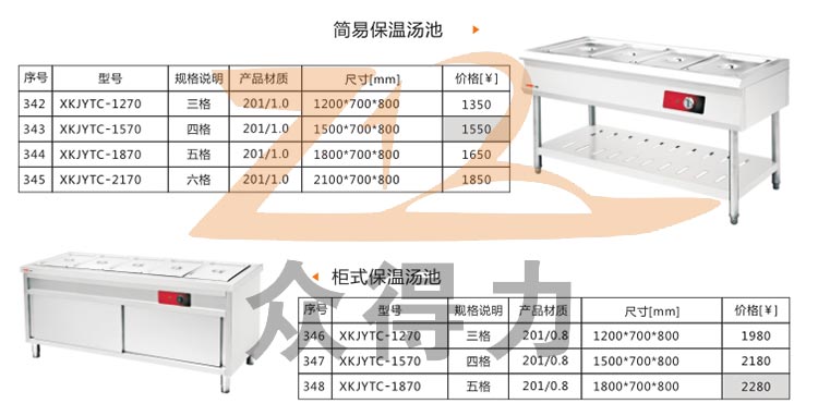 江西眾得力有限公司生產銷售食品機械 商用廚具,承接中央廚房項目整體解決方案! 本系列保溫售飯柜有四格、五格之分,有柜式和簡易款式之分,詳細參數請參考下方數據。