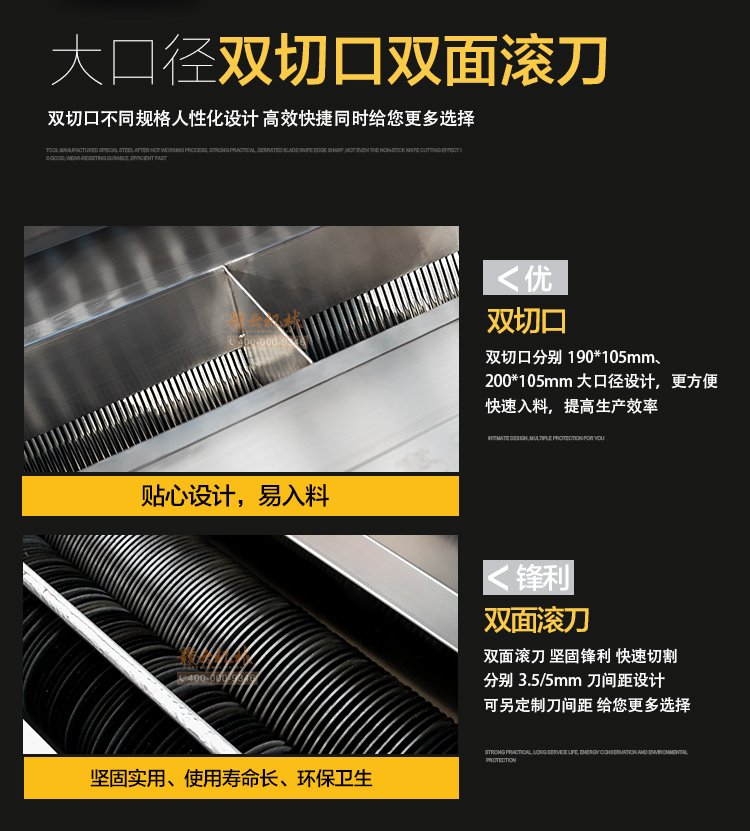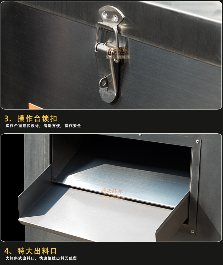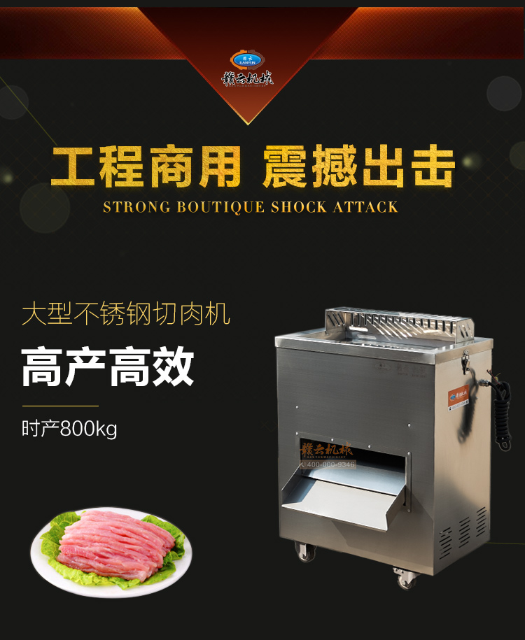 贛云2017款大型切肉機,工程款切肉片肉絲機,采用1.2mm304不銹鋼板材加工設(shè)計,配備3kw大功率純銅電機,380v工業(yè)用電,使得產(chǎn)品性能穩(wěn)定,雙滾切刀設(shè)計,切肉效率高,雙規(guī)格切肉刀具組合,適合大眾需求。