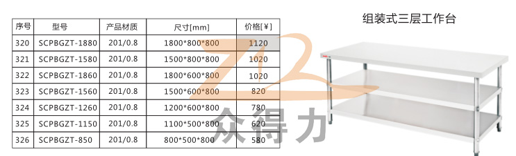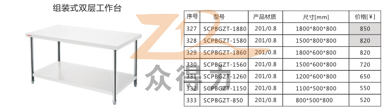江西眾得力廚具有限公司為您提供中央廚房一站式服務,生產(chǎn)銷售食品機械、商用廚具。本組裝式工作臺有1800型和1500型兩種型號,寬度規(guī)格有800mm和600mm可選,板材用料扎實,經(jīng)久耐用。