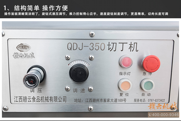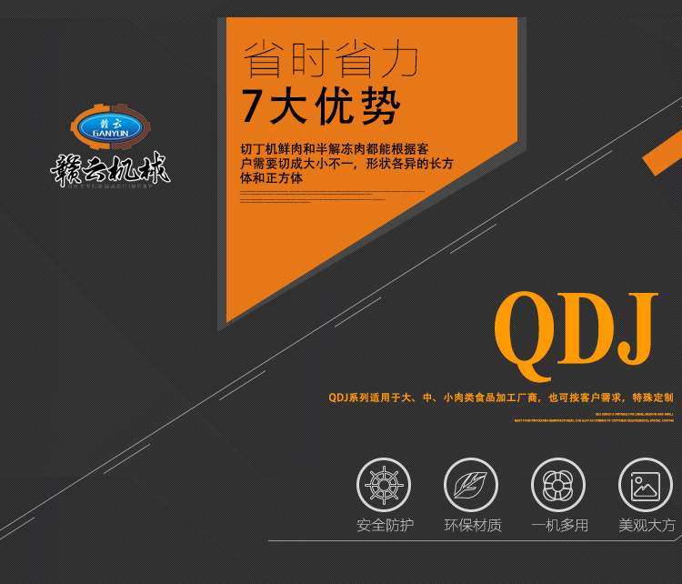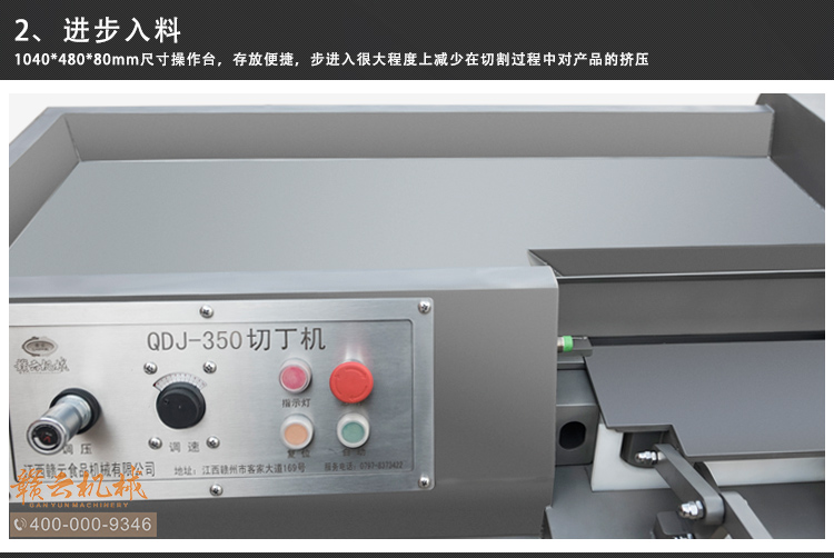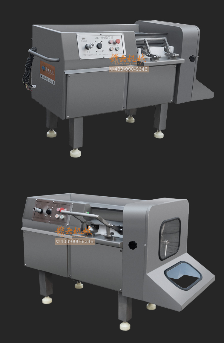 本設(shè)備采用全304不銹鋼構(gòu)架,高級噴砂處理,激光雕刻,利用液壓推料設(shè)計(jì),步進(jìn)式進(jìn)料,全自動切割,配合日本原裝進(jìn)口刀具,鋒利切割,速度快,切割長度可調(diào),寬度規(guī)格可定制,并配備安全感應(yīng)雙保護(hù)設(shè)置,整體外形美觀大氣,是肉類食品加工專用切丁設(shè)備。