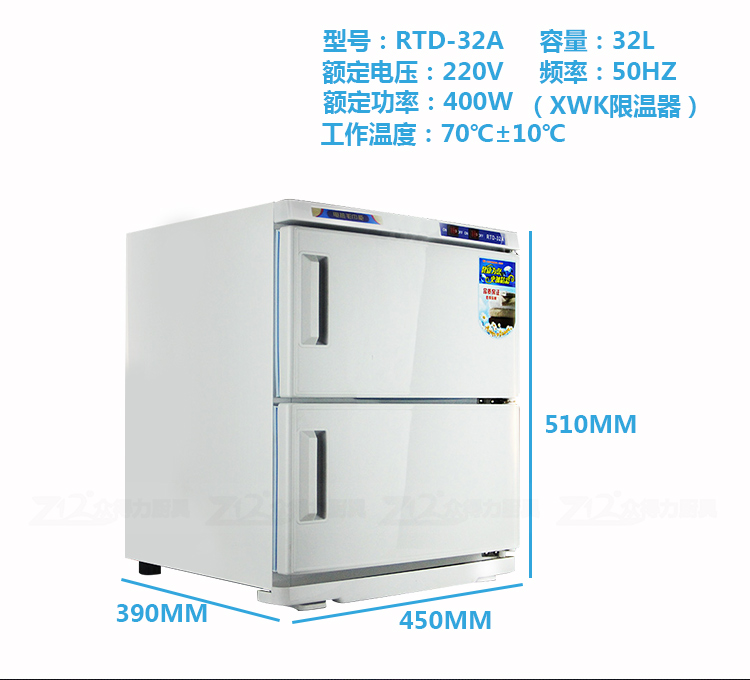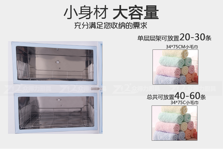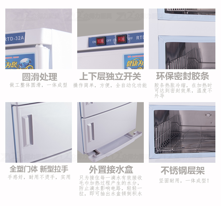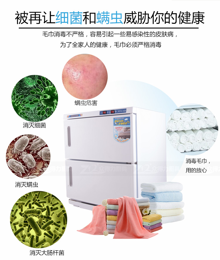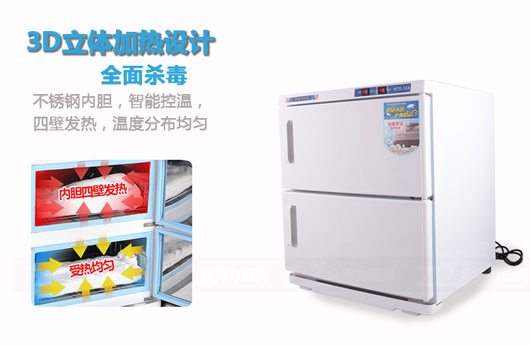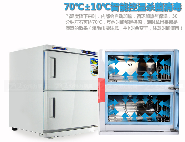 本產(chǎn)品中溫加熱,保溫保濕,毛巾消毒,不再讓細(xì)菌和螨蟲威脅您家人的健康和客戶的健康。不銹鋼內(nèi)膽,智能溫控,四壁發(fā)熱,溫度分布均勻。