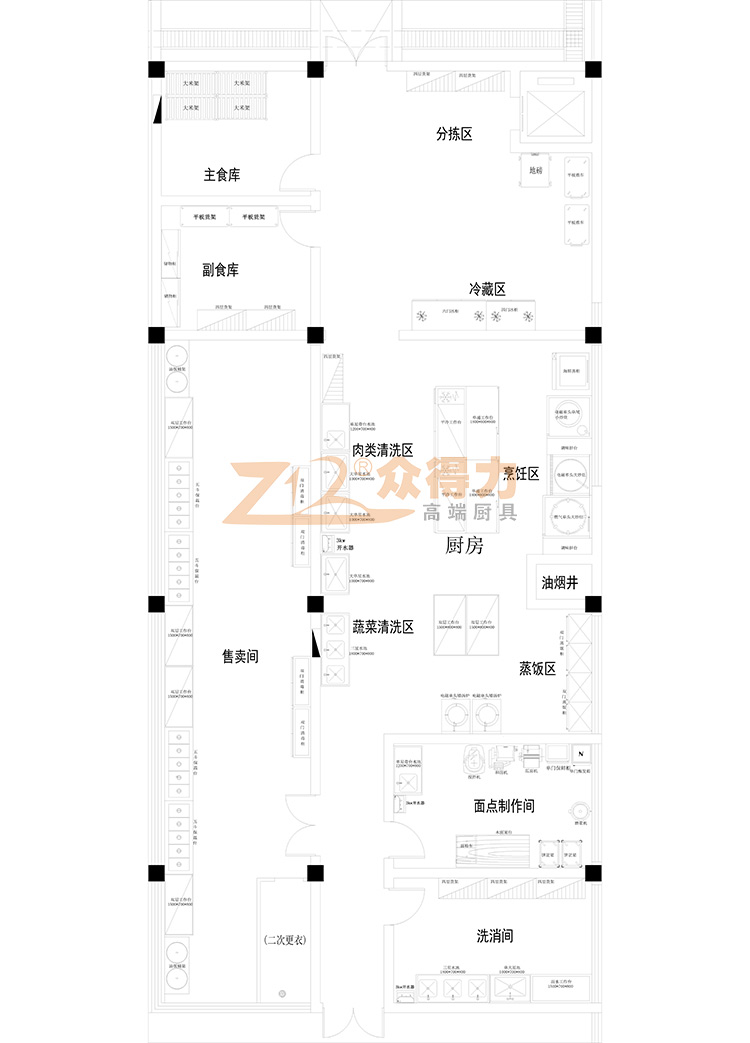 江西眾得力廚具有限公司設計的興國學校廚房工程設計規劃案例